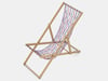 3D model of wooden deckchair with cord seating.