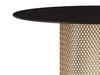 Solid industrial base contrasts with thin tabletop making this piece both stable and finesse. The feeling increases as light and air flow subtly through the mesh structure.